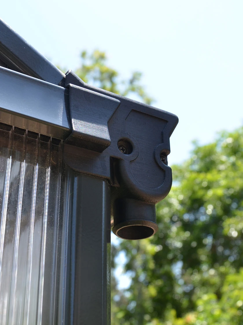 - 10 mm (0.4″)-thick hail-resistant, high impact twin-wall polycarbonate panels, which are 100% UV-protected, providing extra protection and ideal insulation