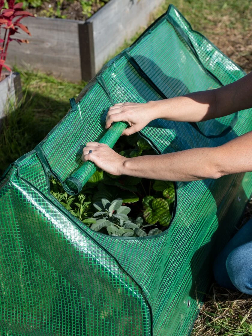 Start your gardening season earlier and extend your harvests later with this crop-protecting multi-cloche. Like a cold frame that you can easily pick up and whisk away to another area of your garden as each set of plants is hardened off, this lightweight cloche also provides greenhouse-like frost-protection and temperature moderation to assist in your late season gardening exploits. Heavy-duty polypropylene cover is durable and easy to clean. Two large zip panels allow for quick ventilation and give you easy access for harvesting. Stake and stabilize your multi-cloche with included metal pegs.