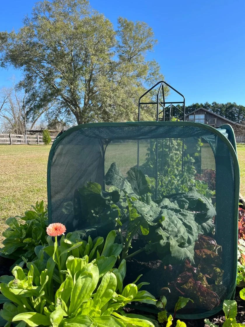 Self-supporting mesh enclosures keep out insects, birds and animal pests like rabbits — even dogs and cats — while letting in light and rain. Fine mesh allows good air circulation while protecting plants from harsh, drying winds. Pop-Ups install in minutes and fit snugly over 4′ x 4′ or 4′ x 8′ raised beds; they can also be used over Grow Beds and in-ground plants. Built-in corner loops and anchoring stakes (included) let you secure Pop-Ups into the ground. Covers fold flat for easy storage. The 48″ height is ideal for larger plants like peppers, potatoes, broccoli and blueberries.